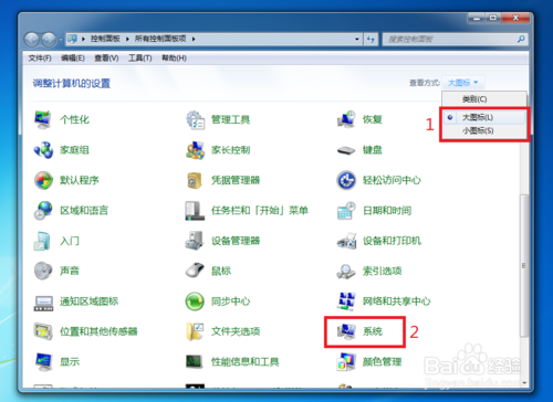 查看激活狀態(tài)。打開控制面板,在查看方式中選擇“大圖標(biāo)”(小圖標(biāo)也可以),然后找到“系統(tǒng)”選項(xiàng)并單機(jī)打開。如圖:
