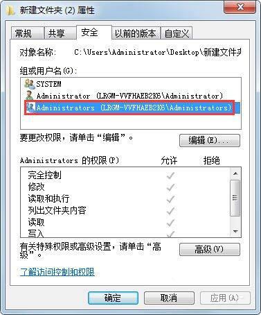3、在“安全”選項(xiàng)卡中點(diǎn)擊“組或用戶名”下方的Administrators選項(xiàng);如圖所示: