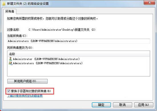 7、勾選“替換子容器和對(duì)象的所有者”選項(xiàng)并單擊“確定”按鈕;如圖所示: