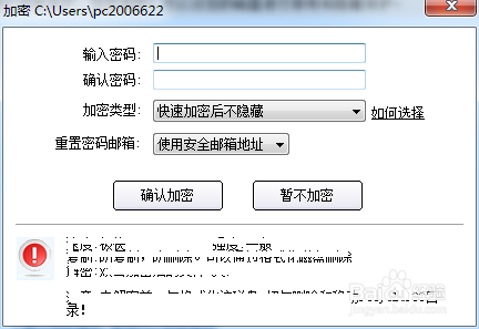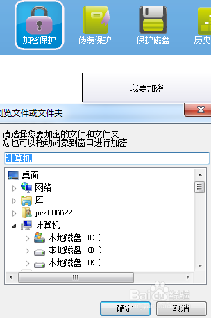 5.單擊【我要加密】選擇要加密的 “文件夾”,輸入密碼(解密該文件夾的密碼,不是啟動密碼。)