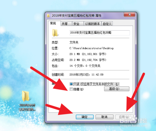 1.對著文件夾,右擊,屬性,在隱藏前面打?qū)矗缓簏c擊應(yīng)用,確定。