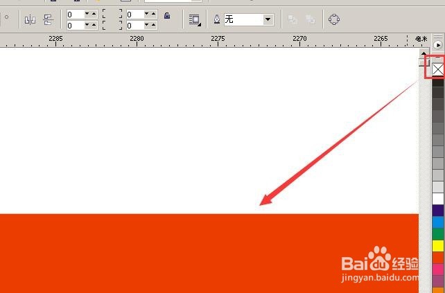 2、還用挑選工具選中矩形,用”鼠標(biāo)右鍵“點(diǎn)顏色框上面那個(gè)X,黑色線框就沒有了; (圖2)