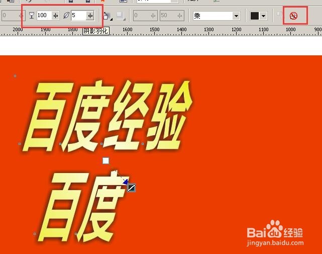 2、上面紅色框內(nèi),第一個(gè)是陰影的深淺,第二個(gè)是陰影的羽化程度,后面那個(gè)是可以取消陰影;(圖2)