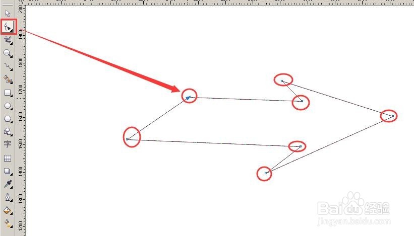 2、使用工具欄第二個(gè)”形狀工具|“點(diǎn)每一個(gè)節(jié)點(diǎn)都可以隨意拖動(dòng);(圖3)