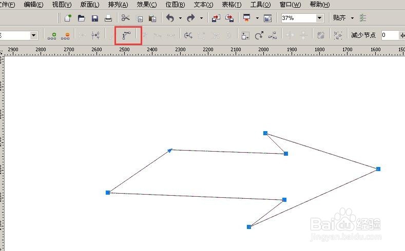 3、用”形狀工具“選中所有節(jié)點(diǎn),點(diǎn)上面”把直線轉(zhuǎn)換為曲線“,選擇哪條線都可以改變成曲線;(圖4)(圖5)