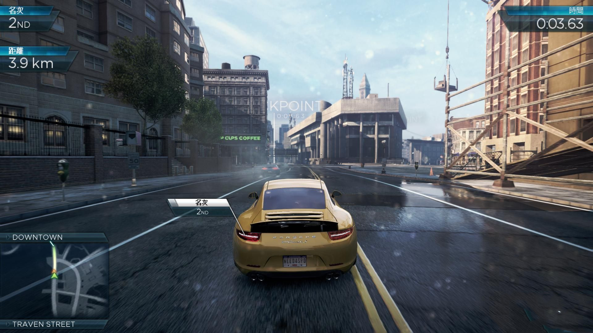 終點(diǎn)是停著一輛保時(shí)捷911,這就是你的第一輛車,按照提示鍵換乘。根據(jù)提示用方向鍵右鍵選擇第一場(chǎng)比賽,沿地圖指示駛向比賽起始地點(diǎn),到達(dá)比賽起始地點(diǎn)之后按照提示按鍵開(kāi)始比賽。