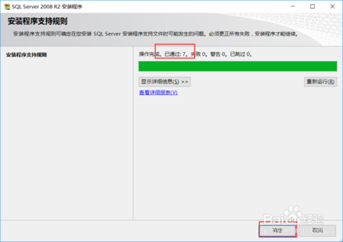 對安裝規(guī)則進行檢測,顯示通過后點擊確定