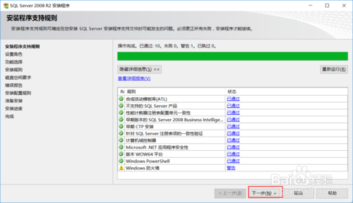 安裝配置規(guī)則通過后點擊下一步
