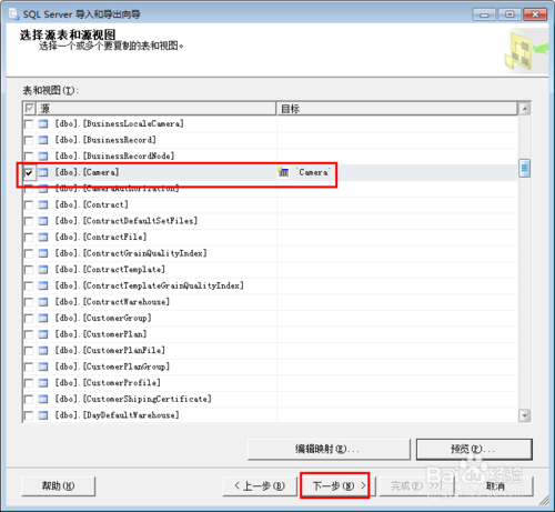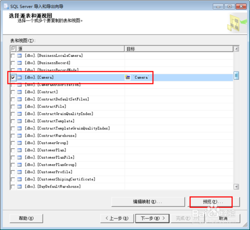 下一個頁面采用默認設(shè)置,之后點擊下一步按鈕。選擇數(shù)據(jù)庫中即將要導(dǎo)出數(shù)據(jù)的具體表,可以通過預(yù)覽按鈕查看數(shù)據(jù),之后點擊下一步按鈕。