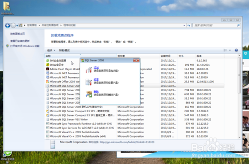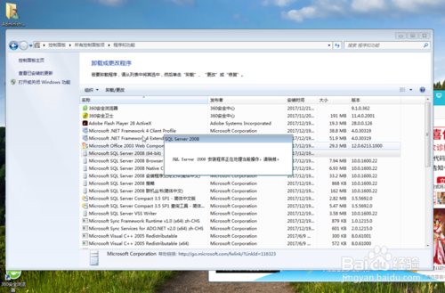 還沒有完,我們再回到”卸載或更改程序“里面,刪除以Microsoft SQLServer 2008開頭的程序,一般情況下只有兩個,還是右鍵選擇刪除,很快就刪除掉了。