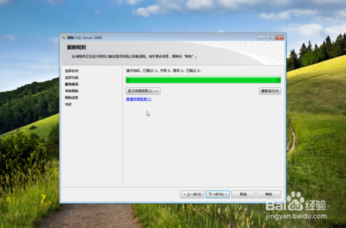 卸載程序會進行規(guī)則檢查,看是否符合卸載的條件要求,如果能夠卸載,點選”下一步“,就會出現(xiàn)要刪除功能的組件樹,如果沒有符合要求,比如說”需要重啟“什么的,就重啟一下電腦,再回到上面 第一步開始操作。此時,點擊”刪除“按鈕。