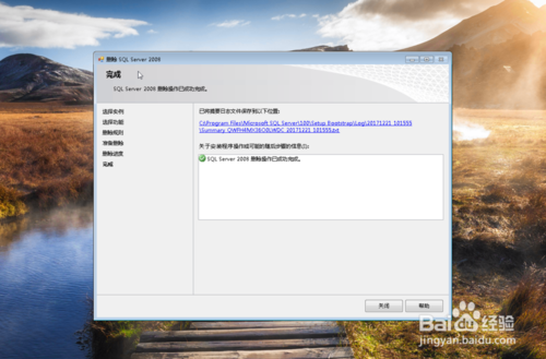 再點擊”下一步“,提示刪除完成 ,點擊關(guān)閉按鈕。