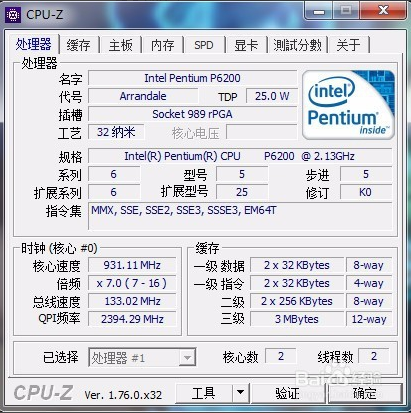 查看處理的詳細(xì)配置信息,為英特爾奔騰P6200處理器