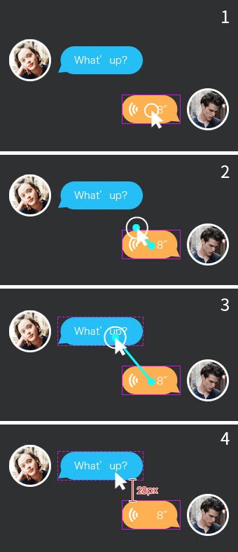 無論是元素間,元素與邊框間的距離標(biāo)注,都只需要簡單的拖、放,點、選就自動生成了。