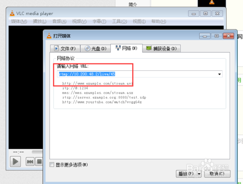 在URL中輸入要播放的視頻源。點(diǎn)擊確定后,就可以看到視頻節(jié)目了
