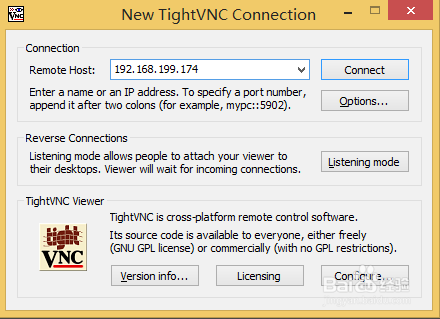 windows tightVNC Viewer新建連接(New Connection),在Remote Host中輸入Mac的IP地址。