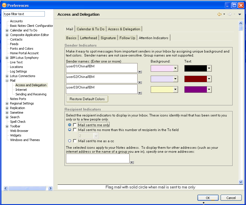 打開 File-Preference-Mail( 如 圖 3),可以給您關(guān)心的人發(fā)送的郵件設(shè)置背景和字體顏色。這樣只要這些人發(fā)送的郵件,就能很容易的被注意到了。
