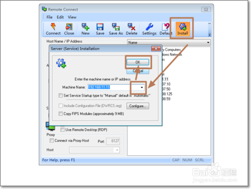 4.點(diǎn)擊“OK”后,會顯示正在安裝服務(wù)。被安裝電腦若禁止了默認(rèn)共享則會安裝失敗。
