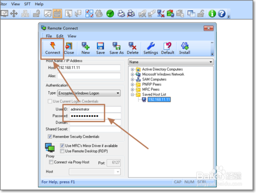 3.輸入完賬號和密碼之后,我們可以直接點(diǎn)擊connect連接控制電腦,第一次會自動(dòng)安裝被控端服務(wù),我們也可以手工來安裝控制服務(wù)。如圖所示