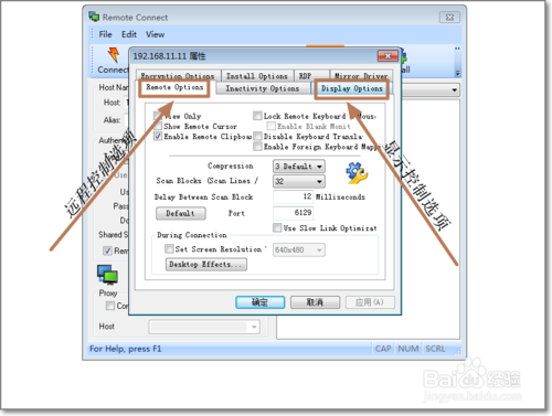 8.如遠(yuǎn)程控制選項(xiàng),可以設(shè)置遠(yuǎn)程連接使用的端口號,顯示選項(xiàng)可以設(shè)置遠(yuǎn)程控制電腦的桌面顯示等。對于局域網(wǎng),網(wǎng)速優(yōu)質(zhì),不用多做其它設(shè)置即可。