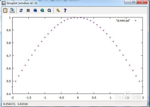 3、打開gnuplot程序,輸入指令:plot "d:444.txt"其余的都默認系統(tǒng)設(shè)置,按回車鍵。
