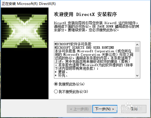 5、刪除成功之后再次運行DirectX的安裝程序進入安裝界面進行安裝即可!