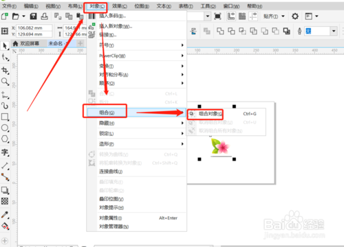 4.框選完成后,找到【對象】-【組合】-【組合對象】即可,這時候幾個元素就合并成一個元素了,可以拖動試試是否大功告成。接下來想要怎么移動旋轉(zhuǎn)都so easy啦~