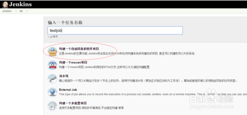 2.安裝好插件后,新建一個(gè)項(xiàng)目,選擇“構(gòu)建一個(gè)自由風(fēng)格的軟件項(xiàng)目”,然后點(diǎn)確定,如下圖所示: