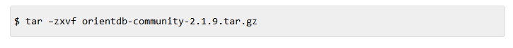 下載后,您將在您的下載文件夾中獲得orientdb-community-2.1.9.tar.gz文件。 您可以使用以下命令提取tarred文件。