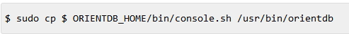 使用以下命令將console.sh文件從OrientDB安裝目錄$ ORIENTDB_HOME / bin復(fù)制到系統(tǒng)bin目錄(即/ usr / bin)以訪問Orient DB的控制臺。