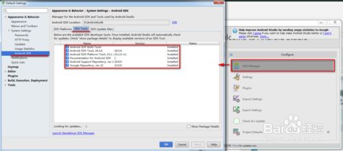 安裝Android SDK(可借助類似Android Studio安卓開發(fā)軟件來完成);需要配置path,加入如:E:\Android\sdk\platform-tools;E:\Android\sdk\tools;E:\Android\sdk;