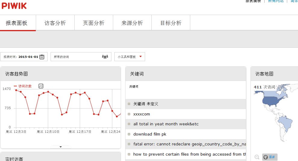當(dāng)腳本執(zhí)行完畢時(shí),即可在piwik中看到網(wǎng)站的訪問(wèn)記錄了,使用也很方便。長(zhǎng)期使用可以寫(xiě)入crontab即可。