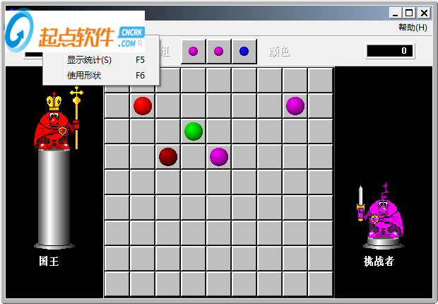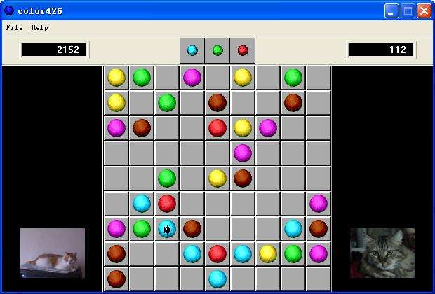 規(guī)則簡(jiǎn)單,有點(diǎn)像綜合了五子棋和俄羅斯方塊,每一輪棋盤(pán)上會(huì)在隨機(jī)位置出現(xiàn)3顆棋子,而每一輪你可以移動(dòng)1顆,無(wú)論上下左右或斜著,把同色的棋子5顆連成一線就可以消去(同時(shí)該輪就不會(huì)產(chǎn)生新棋子),最后當(dāng)棋子填滿棋盤(pán)你就輸了。游戲意思看似簡(jiǎn)單,想打高分卻不是件容易事。