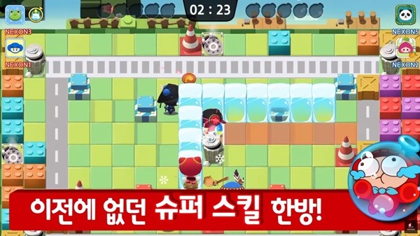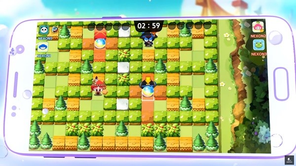 一般對戰(zhàn)為基本的 2 對 2 對戰(zhàn)模式,玩家只要率先踩破敵人的泡泡 5 次即可獲勝。