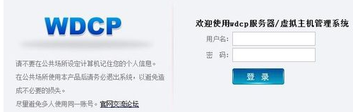 首先我們在瀏覽器輸入http://ip:8080來進入我們的wdcp控制面板登陸頁面。