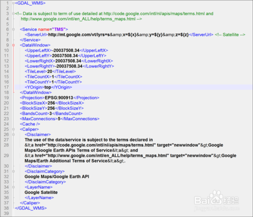 配置文件以XML文件來描述,如Google SateLite map.xml,主要字段包括: