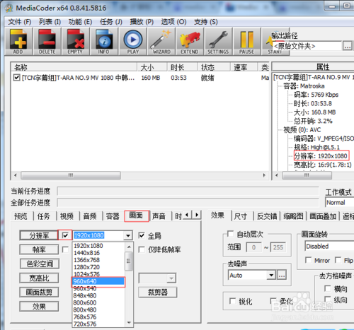 點(diǎn)擊畫面選項(xiàng),選擇分辨率
