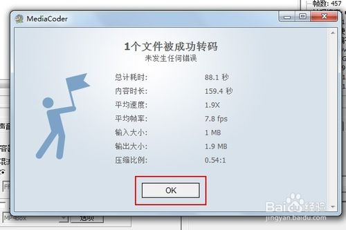 壓制完成后彈出信息提示卡,可以發(fā)現(xiàn)視頻壓制后體積大大減小了