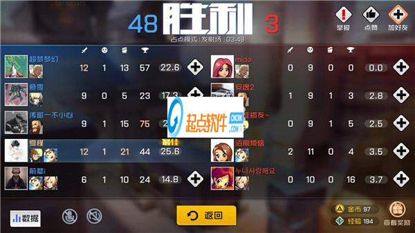 10個玩家分為兩方進(jìn)行對抗,每擊敗一名敵方玩家則可以獲得一分,整個隊(duì)伍共同累計這個分?jǐn)?shù),首先達(dá)到指定值的隊(duì)伍獲得勝利。