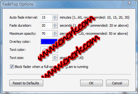 FadeTop V2.5 英文綠色免費(fèi)版 在使用電腦工作時(shí),常會(huì)忘了該休息的時(shí)間?如果能使用fadetop這款軟件,便能夠定時(shí)的提醒休息時(shí)間,fadetop 可以自定義每隔一段時(shí)間,讓電腦屏幕使用淡入淡出的視覺效果來顯示當(dāng)前系統(tǒng)時(shí)間,且占滿整個(gè)電腦屏幕,并在經(jīng)過自定義的時(shí)間后,開放電腦屏幕可以繼續(xù)操作。