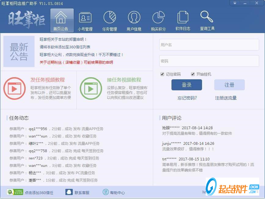 答:的的確確免費使用,因為平臺原理就是大家互相幫助,互相刷,你幫別人刷了,別人同樣也會來幫你刷的,平臺是為廣大賣家提供了一個免費互動場所,大家只要有時間,完全可以不需花錢就可以刷(通過幫別人刷掙得積分),但有些會員沒有時間用客戶端接任務(wù)掙積分或者有些專業(yè)幫別人代刷的會員,嫌接任務(wù)賺積分慢,就直接在平臺購買積分了,平臺也就是靠這個盈利并繼續(xù)為大家更好得服務(wù)下去,互利共贏。