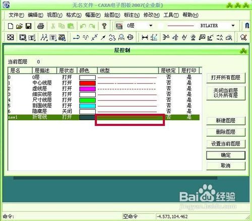 點(diǎn)擊層控制按鈕會(huì)出現(xiàn)層控制窗口,在層控制窗口點(diǎn)擊右邊的新建圖層按鈕