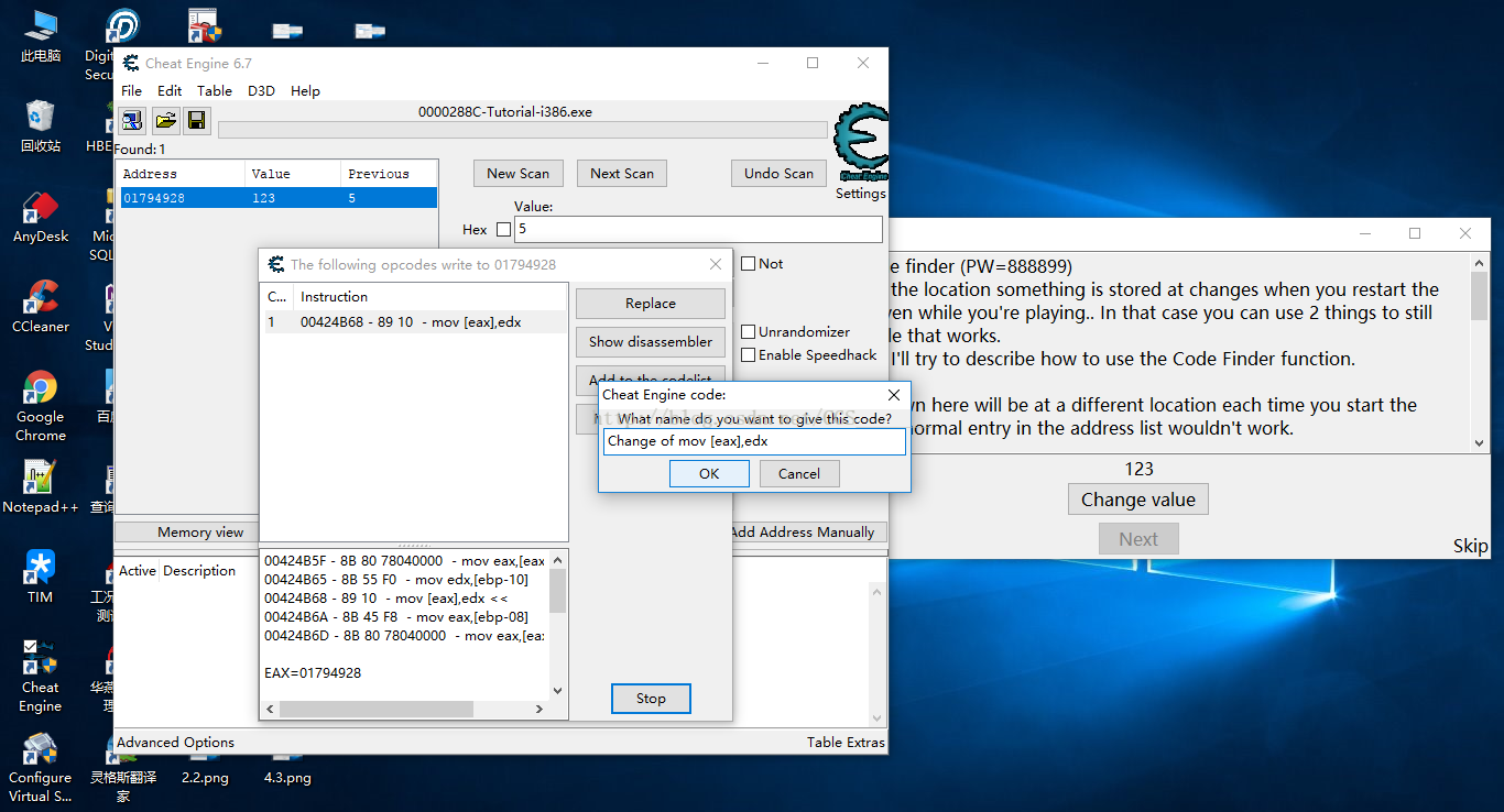 a)首先尋找Change Value改變值這一操作的Address,這一步與前面的介紹的步驟相同,不再描述,如下圖: