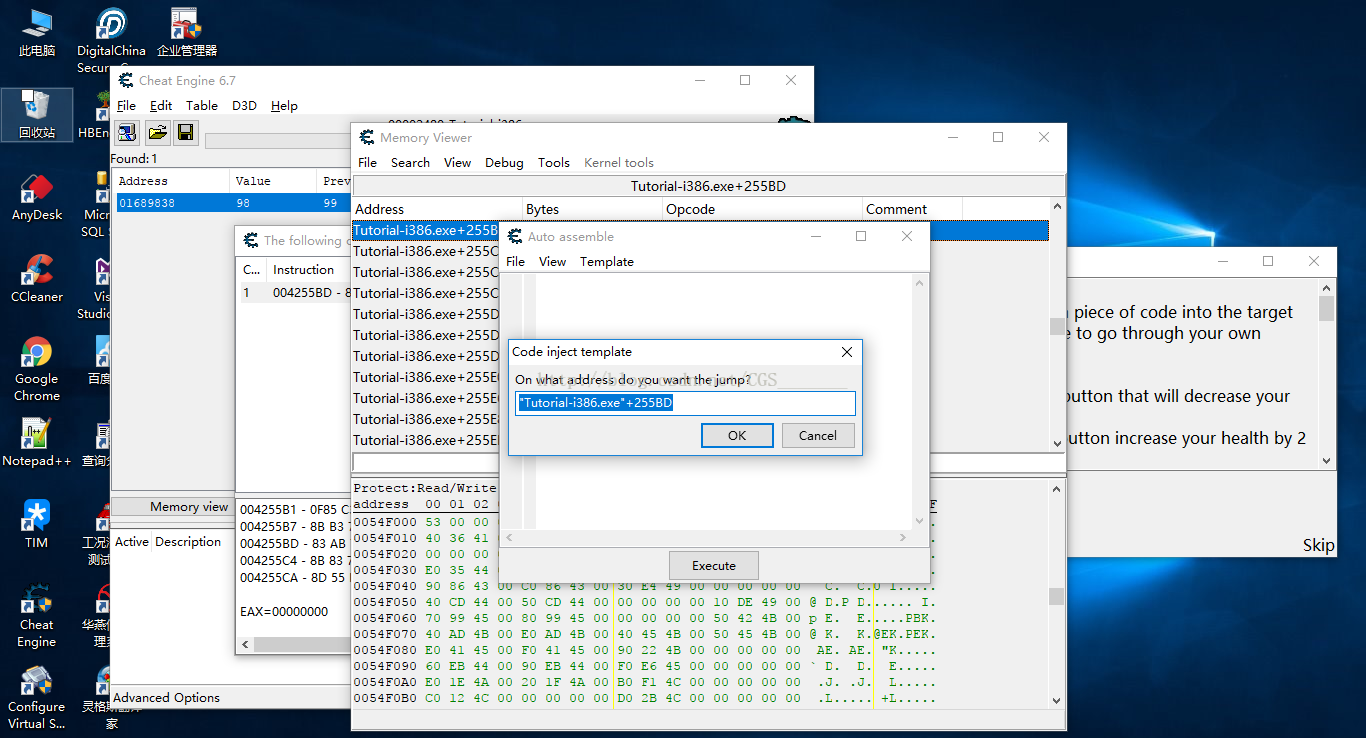 ce作弊引擎(Cheat Engine)是一個開源工具,旨在幫助您修改在窗口下運行的單人游戲,以便您可以根據(jù)自己的喜好使其更難或更容易(例如:找到100hp太簡單,嘗試玩最多1個游戲HP),還包含其他有用的工具來幫助調(diào)試游戲甚至普通應用程序,并幫助您通過后門程序檢查內(nèi)存修改來保護您的系統(tǒng),甚至包含一些方法可以從常規(guī)方法中取消隱藏。它配有內(nèi)存掃描器,可以快速掃描游戲中使用的變量,并允許您更改它們,但它還具有調(diào)試器,反匯編器,匯編器,speedhack,培訓師制造商,直接3D操縱工具,系統(tǒng)檢測工具等。該軟件報毒是正常現(xiàn)象,請?zhí)砑有湃巍?br />