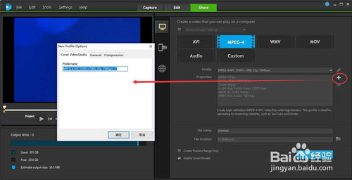 本實(shí)例選擇mp4格式,下拉Profile選擇導(dǎo)出格式的詳細(xì)設(shè)置,也可以點(diǎn)擊+圖標(biāo),添加導(dǎo)出格式參數(shù)設(shè)置。
