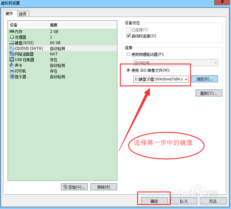 點(diǎn)擊CD/DVD進(jìn)去,選擇之前準(zhǔn)備好的鏡像,如下圖所示操作即可