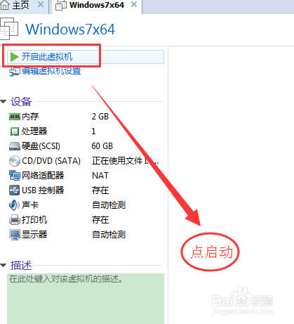 接下來(lái)返回VMware主界面,選擇啟動(dòng)按鈕啟動(dòng)