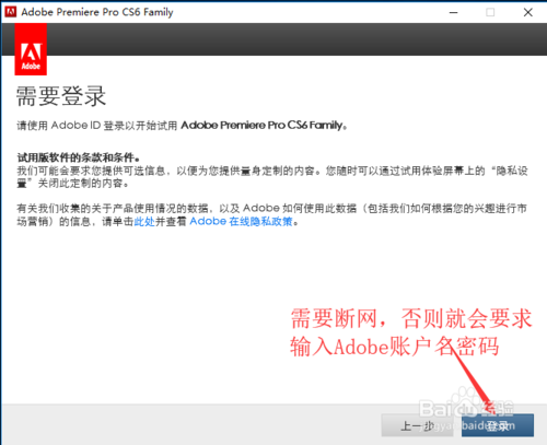 先確認電腦確實斷網(wǎng)了,再點【登錄】,否則就會要求輸入Adobe賬戶名及密碼的