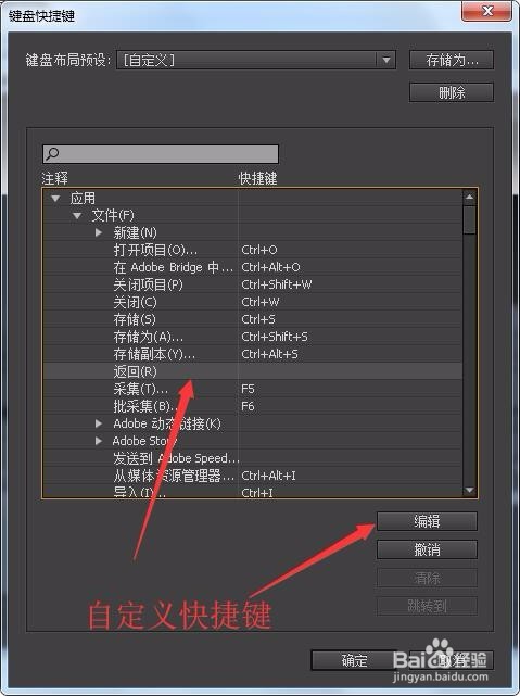 其中點擊一個命令并點擊編輯可更改快捷鍵組合。