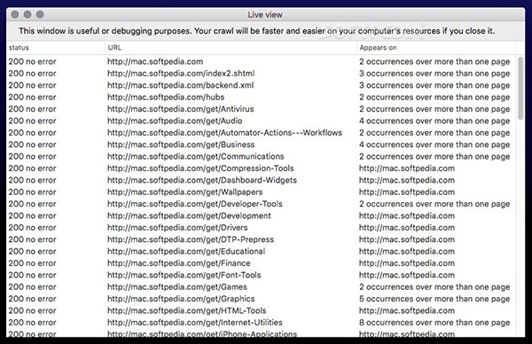 為避免任何不必要的掃描,您可以選擇僅抓取單個網(wǎng)頁,然后通過簡單的鼠標(biāo)點(diǎn)擊開始此過程。在實(shí)時查看窗口中,您可以看到每個鏈接返回的狀態(tài)消息,這在處理調(diào)試任務(wù)時可能會很有用。